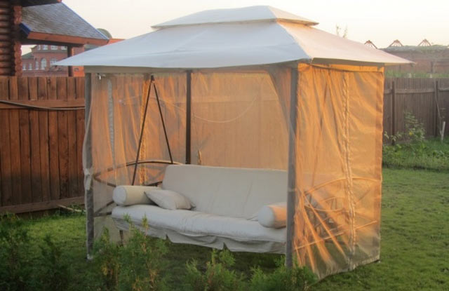 Для гойдалок з укриттям, шатром і москітною сіткою частіше вибирають змішані тканини, з комбінацією синтетичних і натуральних волокон. Перші забезпечують практичність, продовжують термін служби аксесуарів, другі - комфорт з точки зору тактильних відчуттів, вони приємні на дотик.