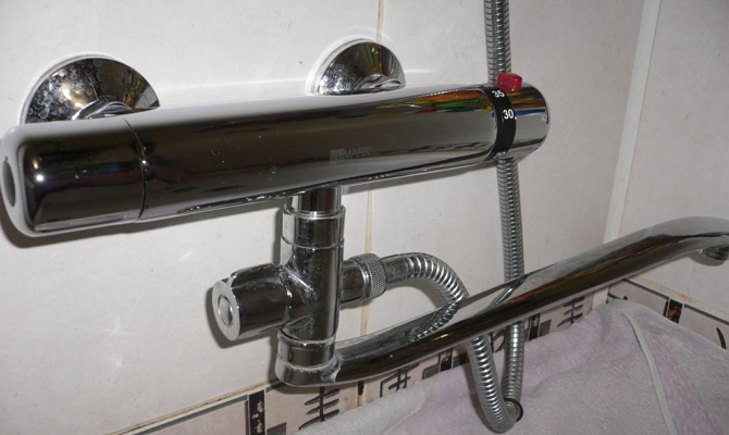 Змішувач з термостатом для ванни з душем - змішувач третього покоління. Він прийшов на зміну одноважільним пристроїв, що дозволяє регулювати